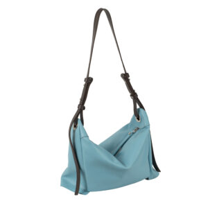 Bolso piel vacuno color azul, asa bandolera de cruzar regulable , cierre con cremallera, 2 bolsillos interiores.