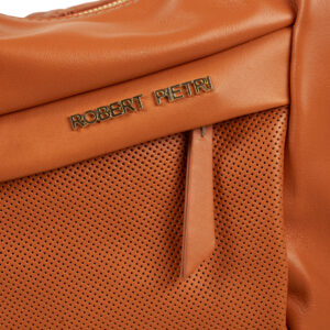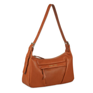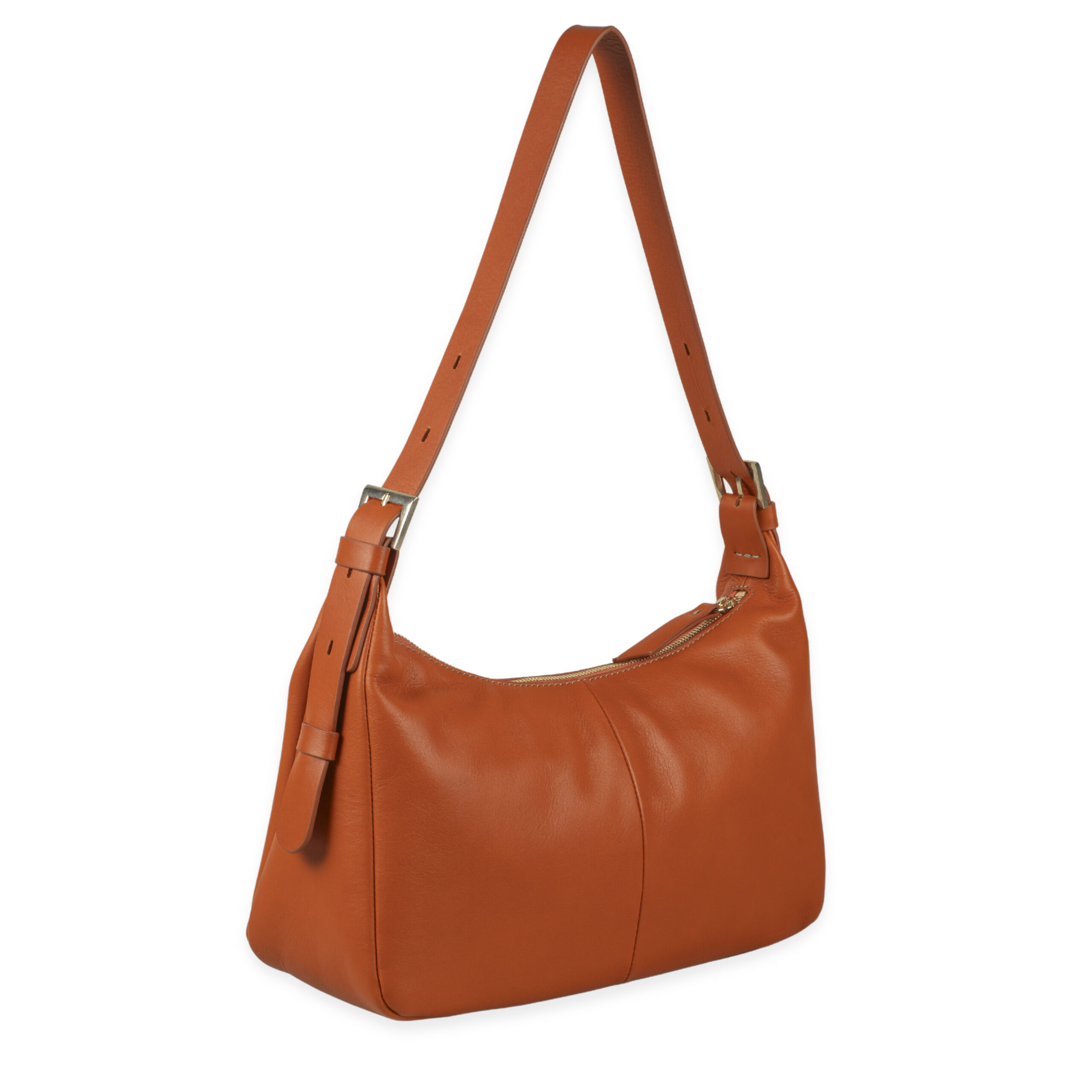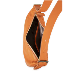 Bolso hobo piel vacuno napa color naranja, asa de hombro regulable, cierre con cremallera, 2 bolsillos interiores y 1 bolsillo exterior.