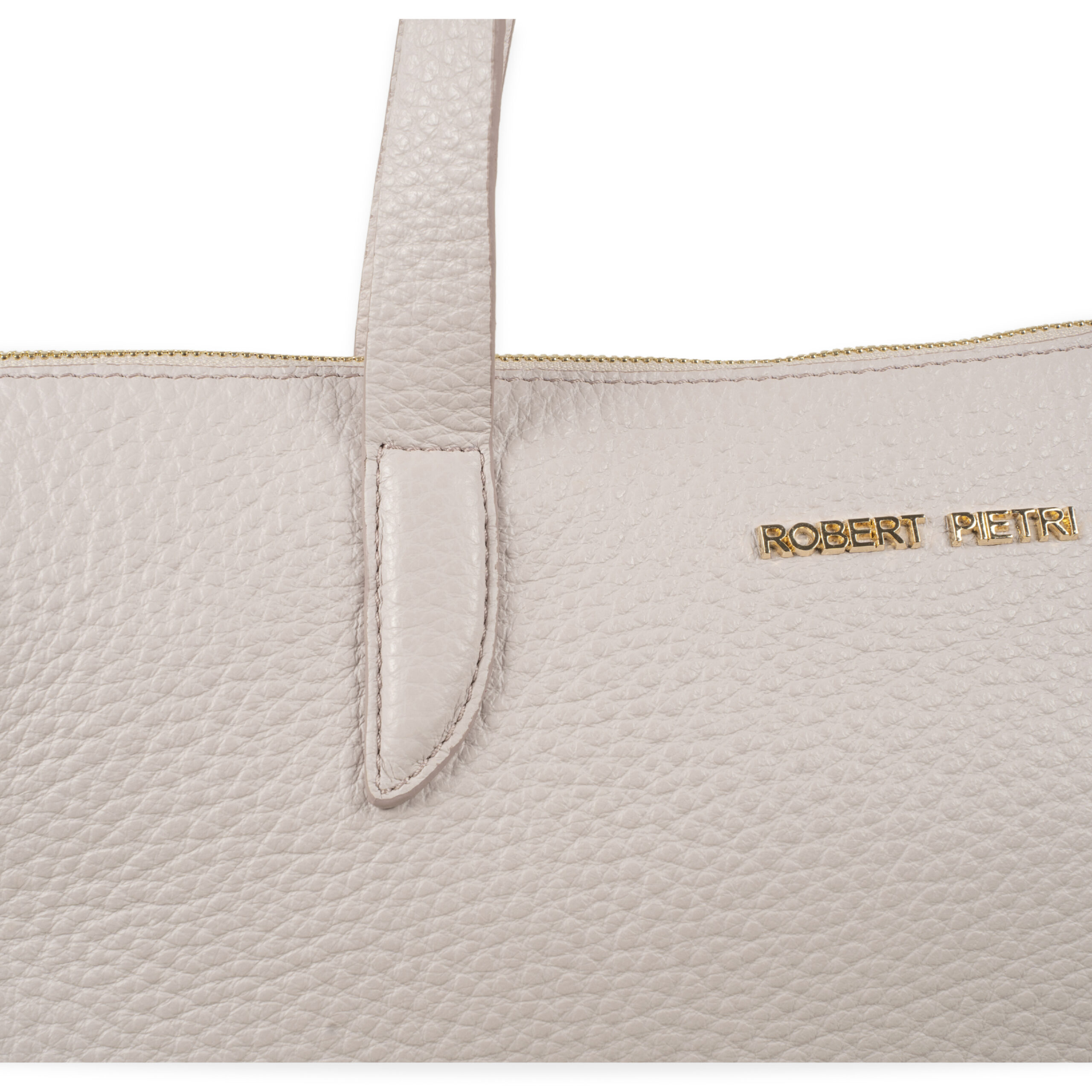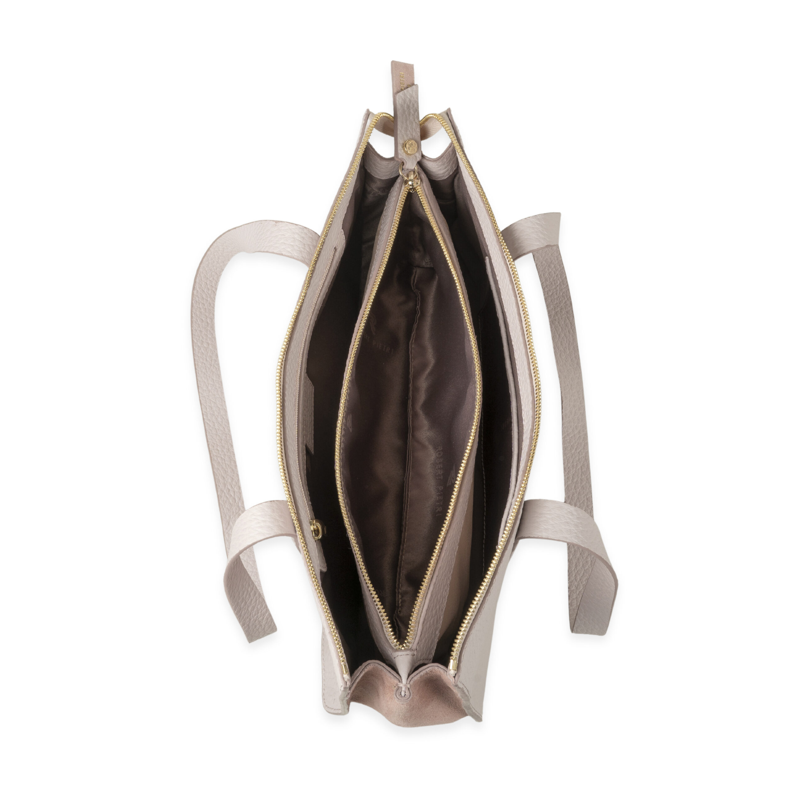 Bolso tote piel vacuno grano combi. serraje color malva, 2 asas de hombro, cierre con cremallera, 3 bolsillos interiores.