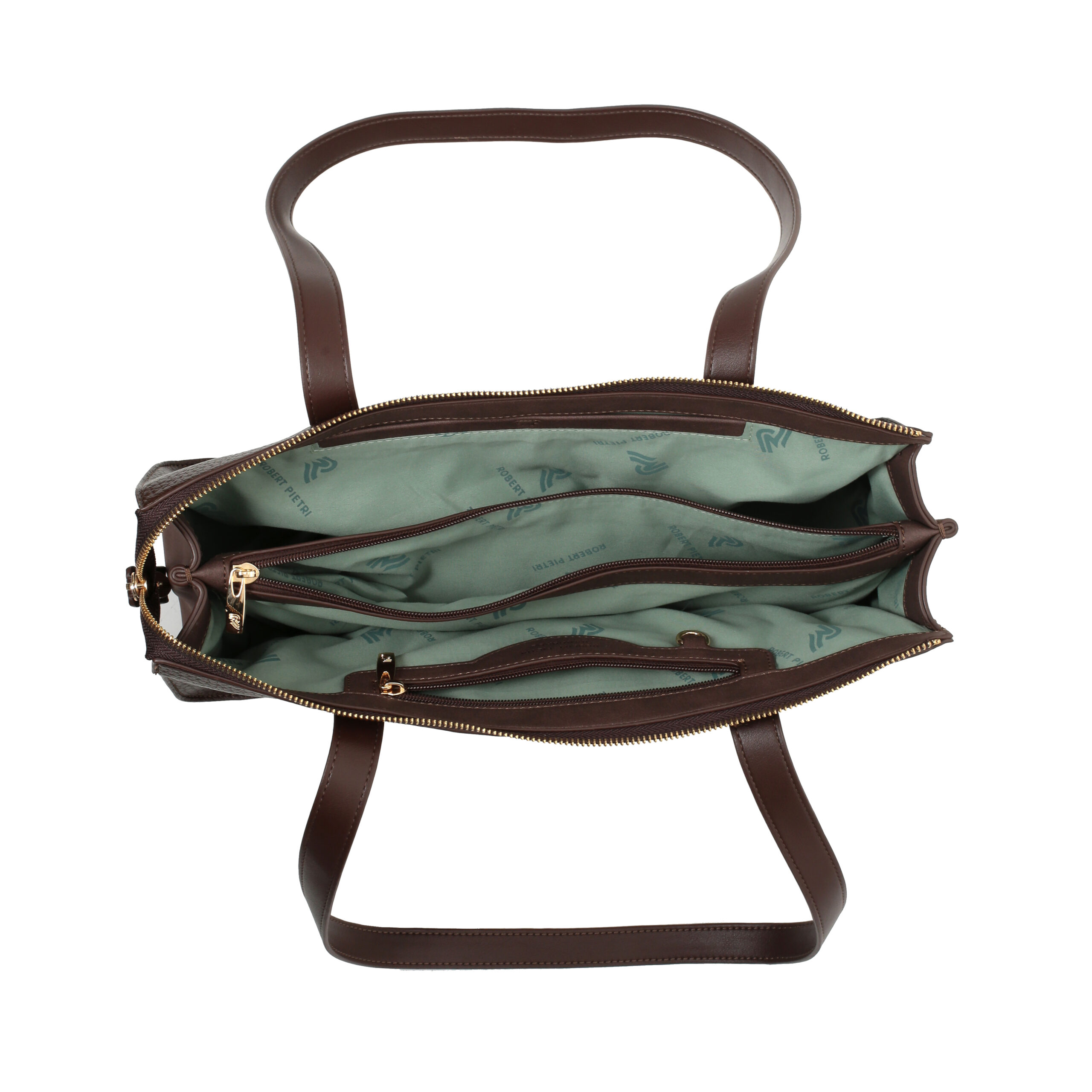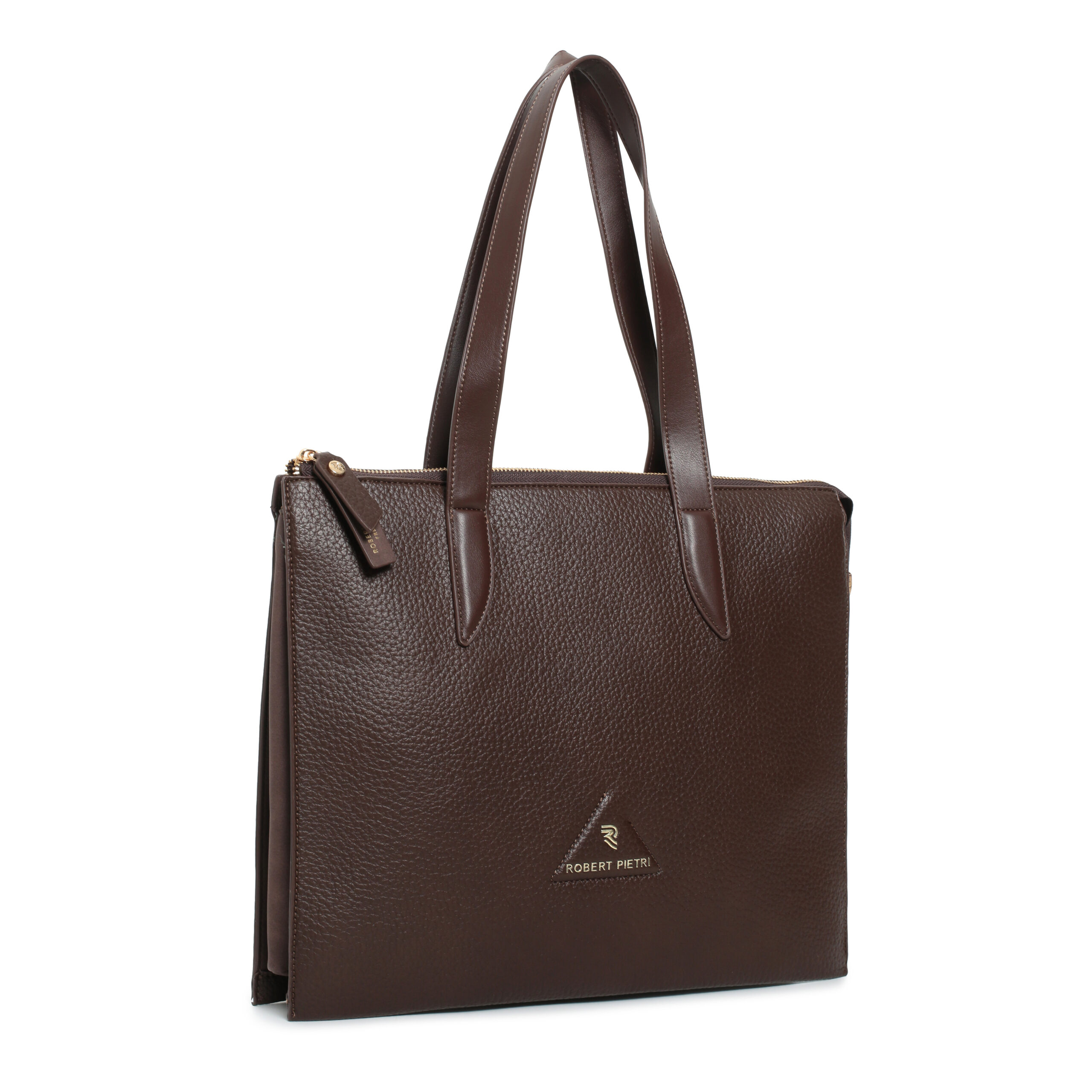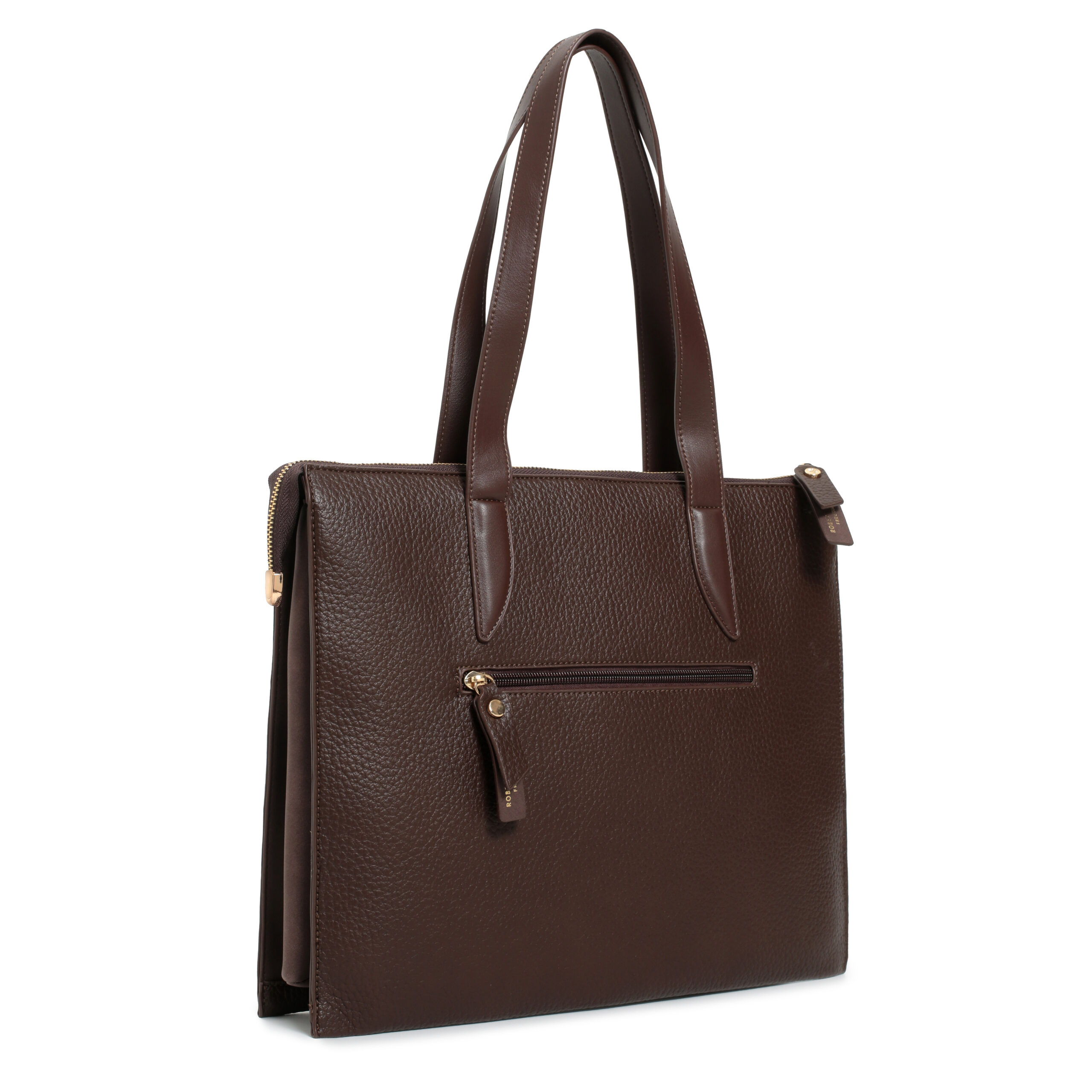 Bolso shopper pu grano y ante color brown, 2 asas de mano/hombro, asa bandolera desmontable y regulable para hombro y cruzar, cierre con cremallera, 3 bolsillos interiores y 1 bolsillo exterior.