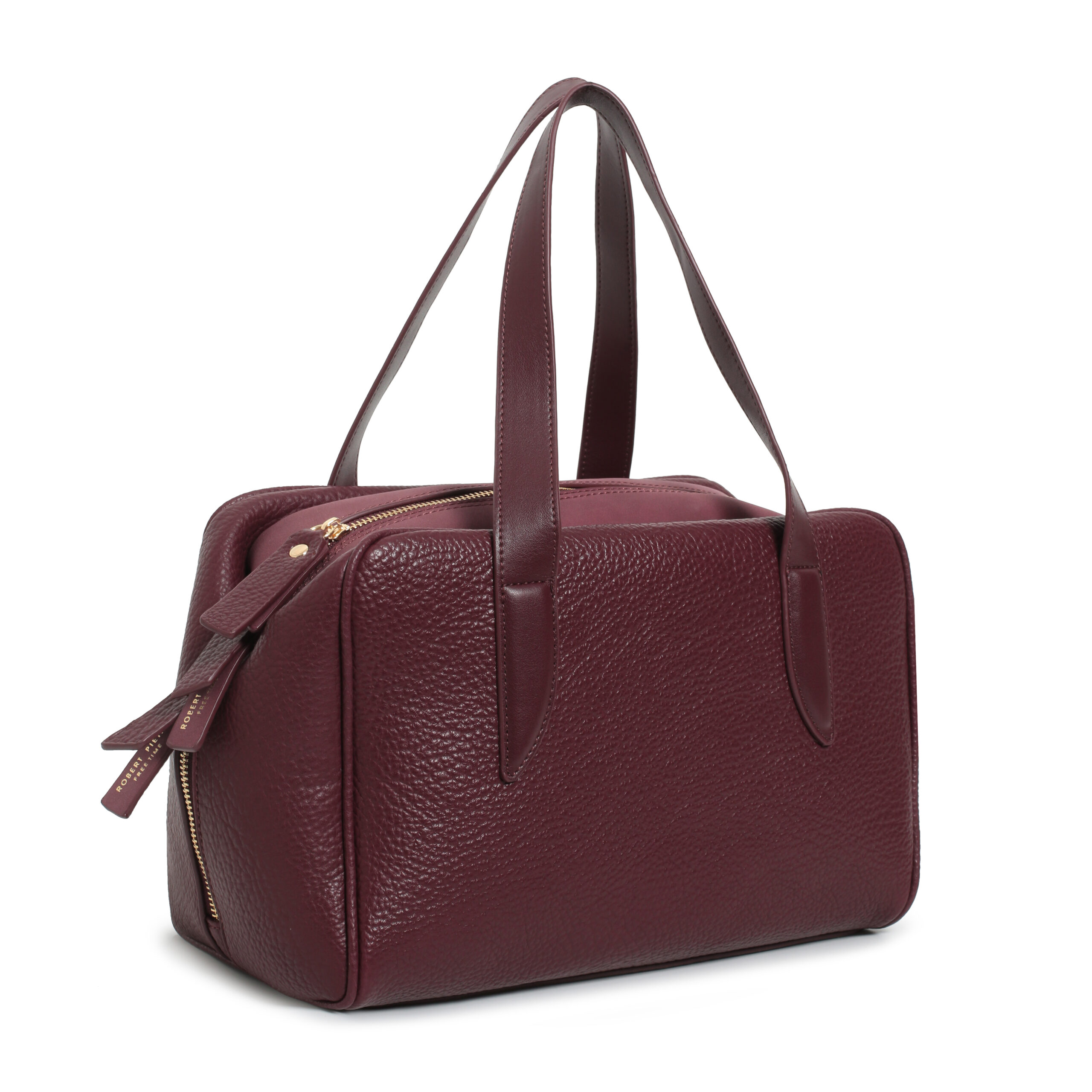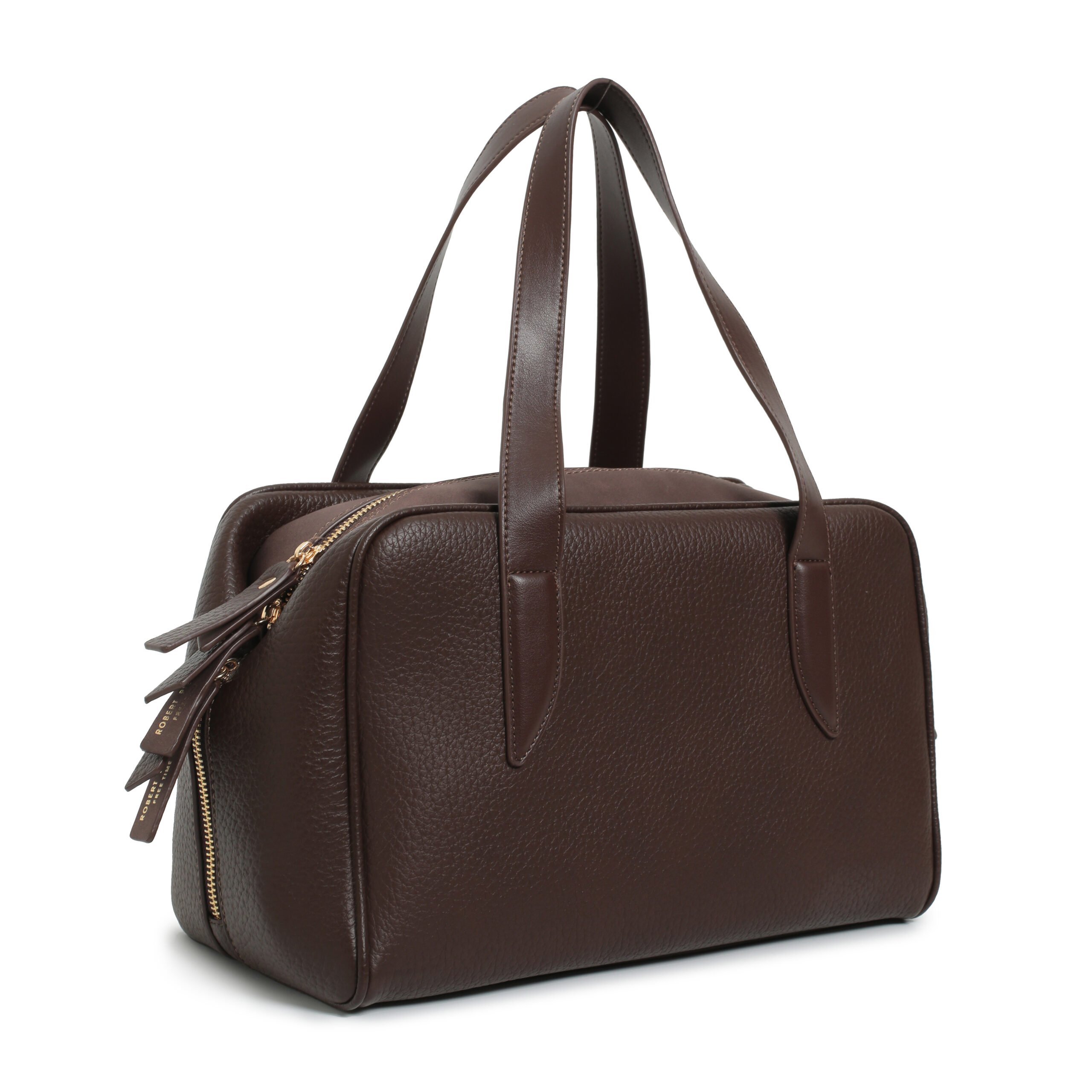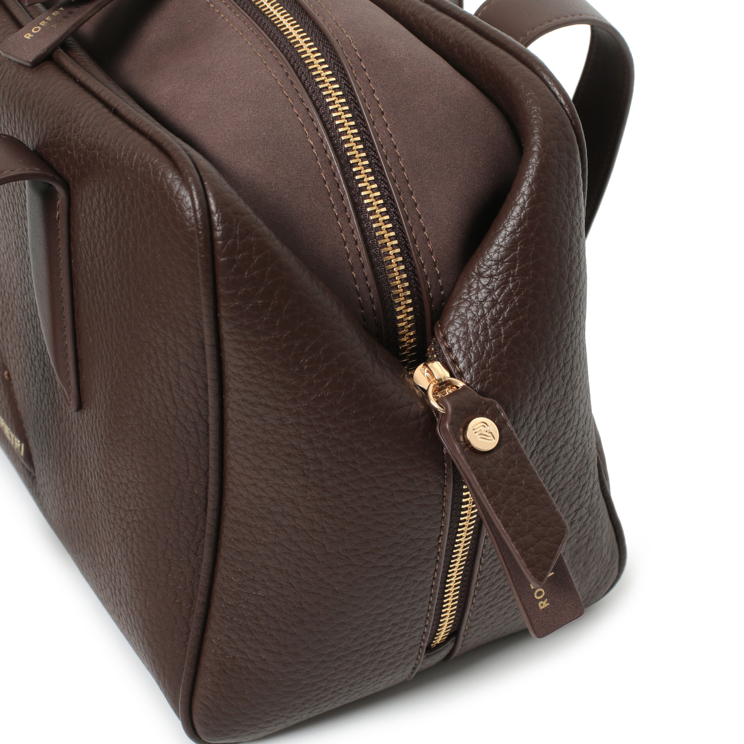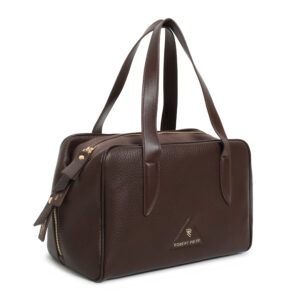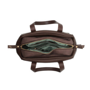 Bolso bowling pu grano y ante color brown, 2 asas de mano/hombro,cierre con cremallera, 2 bolsillos interiores.