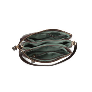 Bolso cross body pu grano y ante color brown, asa de hombro desmontable, asa bandolera desmontable y regulable para hombro y cruzar, cierre con cremallera, 2 bolsillos interiores y 1 bolsillo exterior.