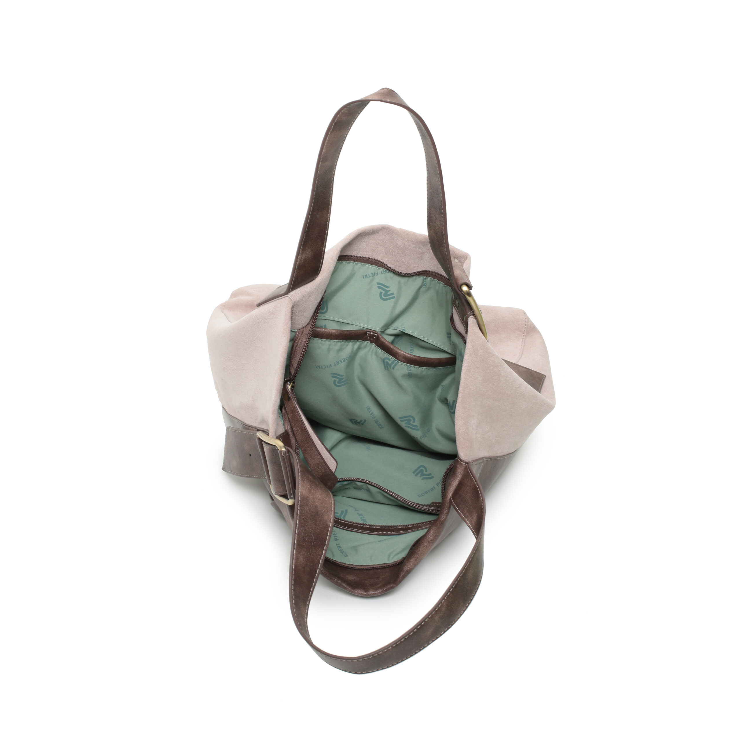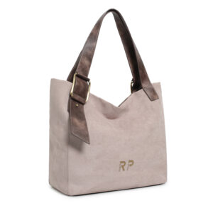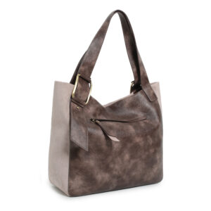 Bolso shopper pu ante color piedra, 2 asas para hombro regulables, cierre con cremallera, 2 bolsillos interiores y 1 bolsillo exterior.