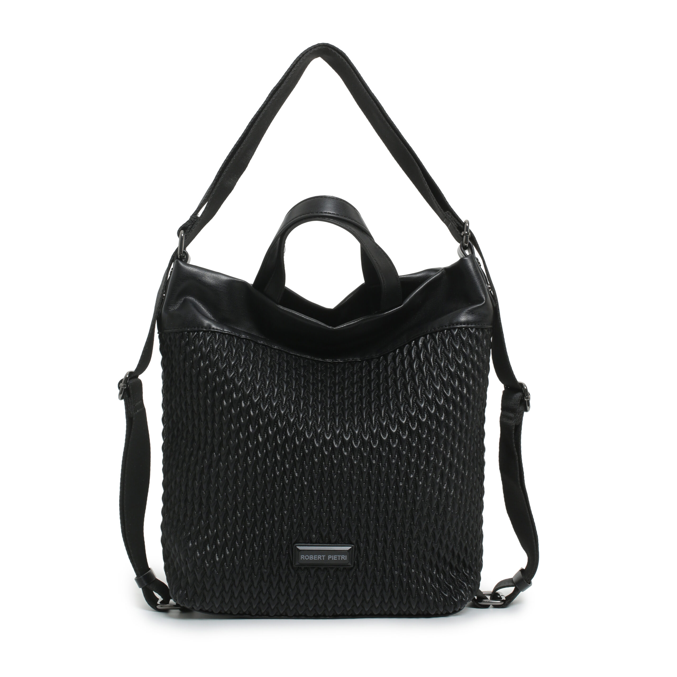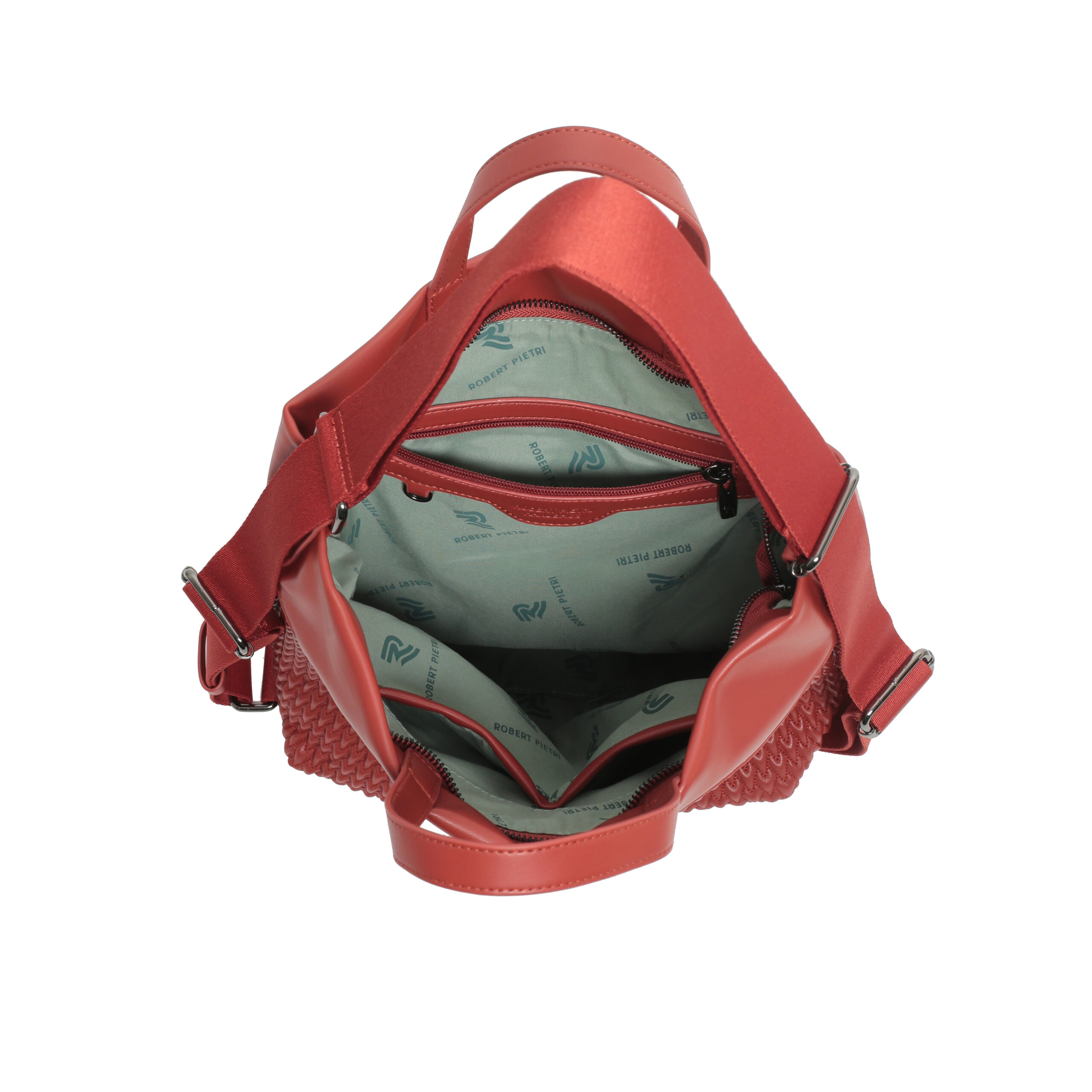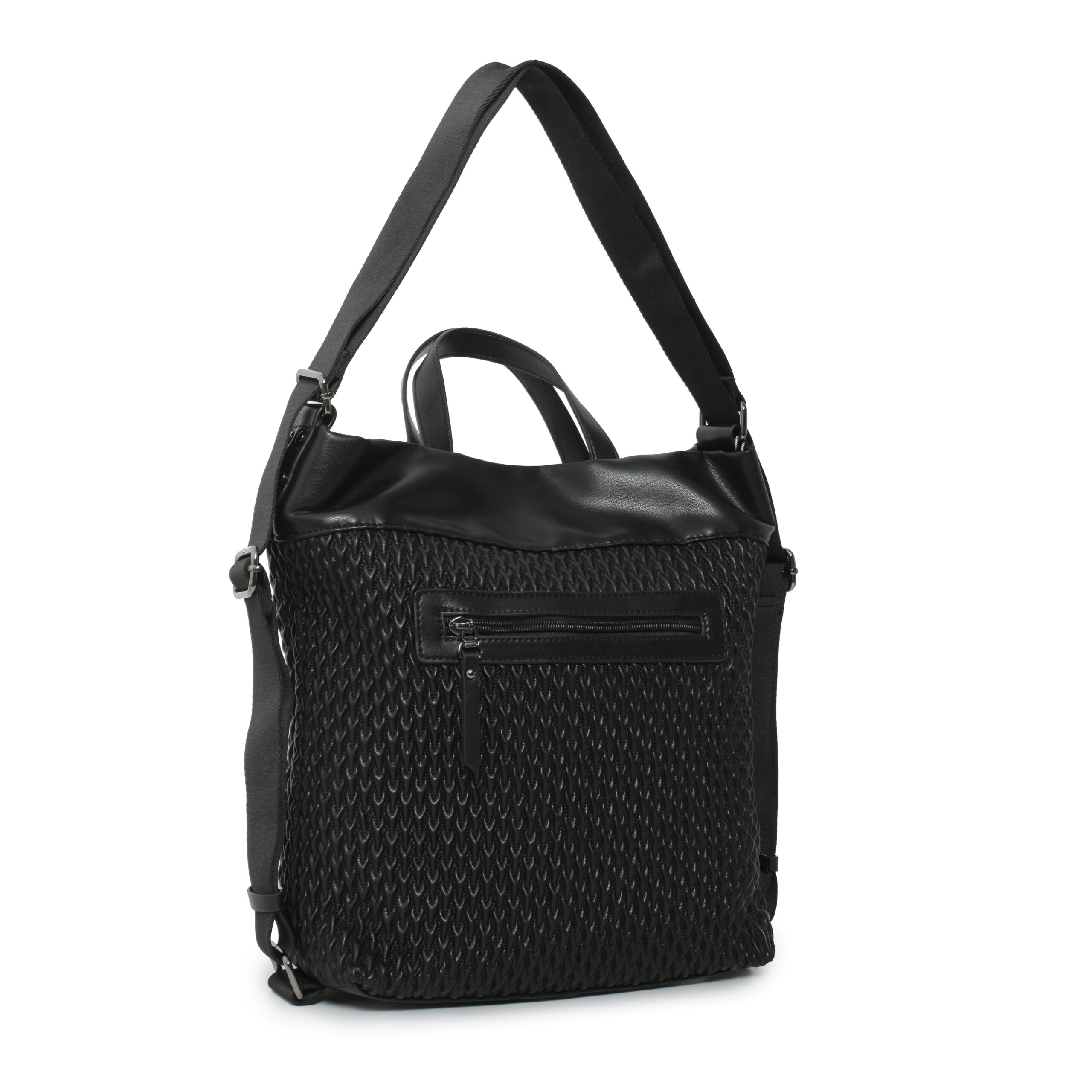 Bolso hobo back pack pu plisado color teja, asa de mano y asas de hombro regulables, cierre con cremallera, 2 bolsillos interiores y 1 bolsillo exterior.