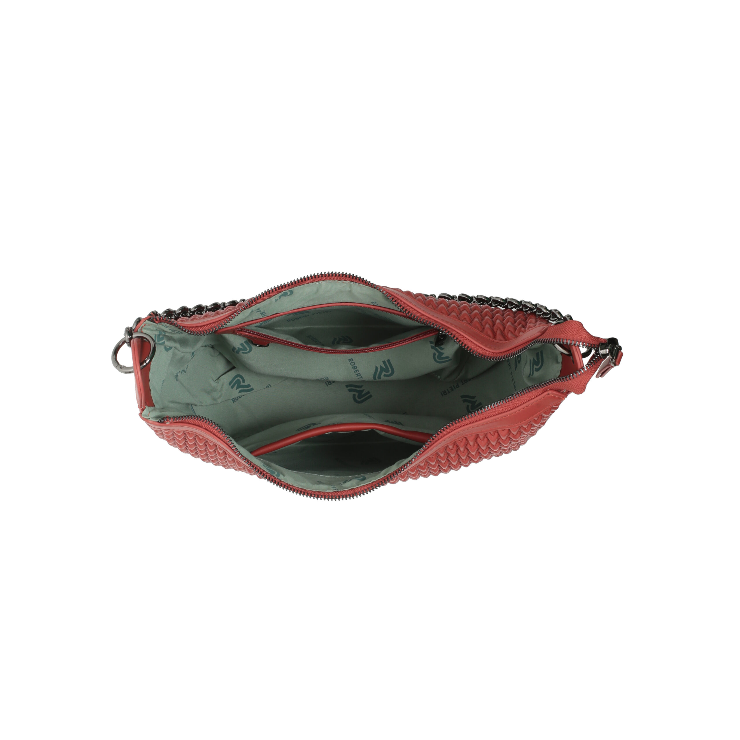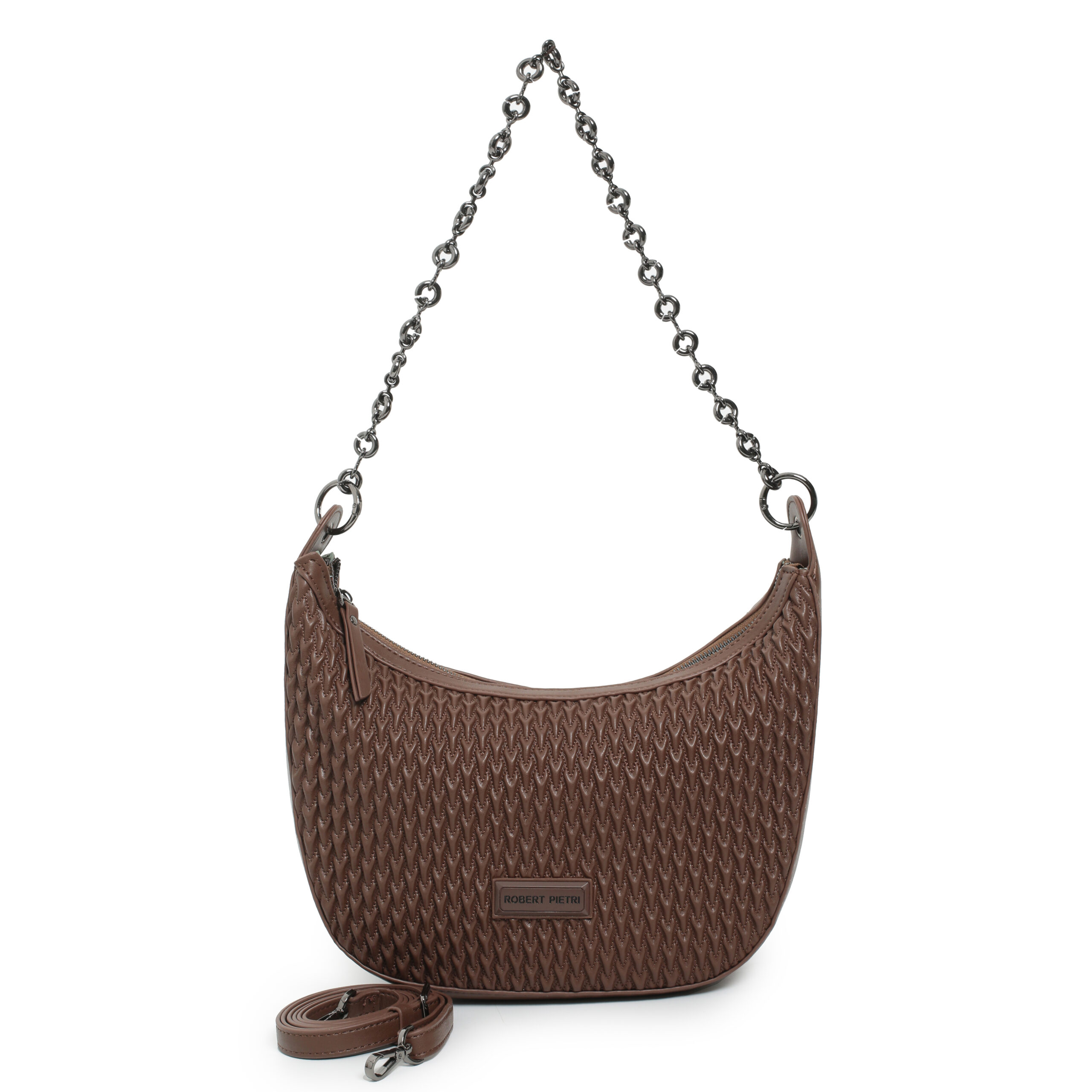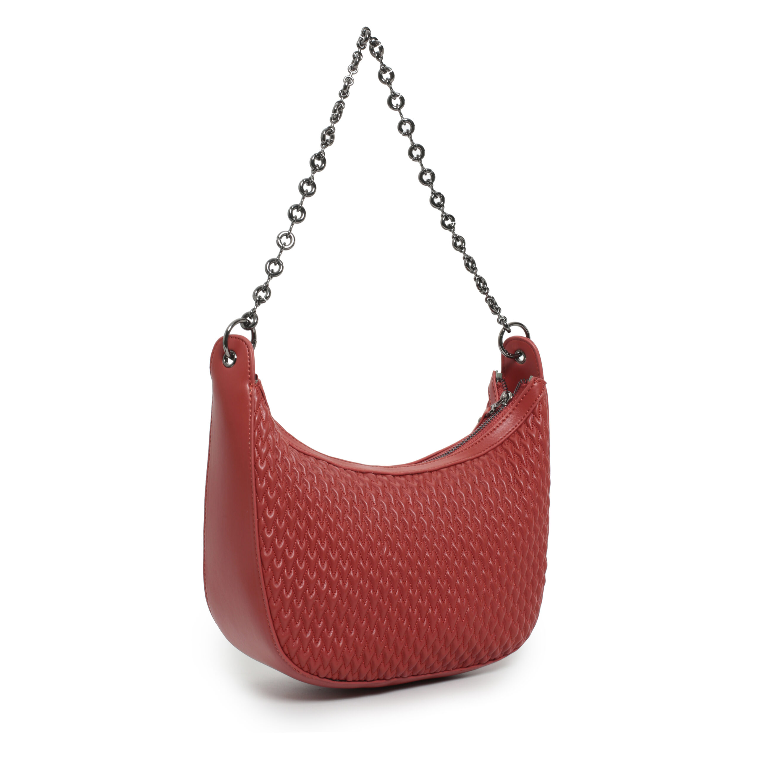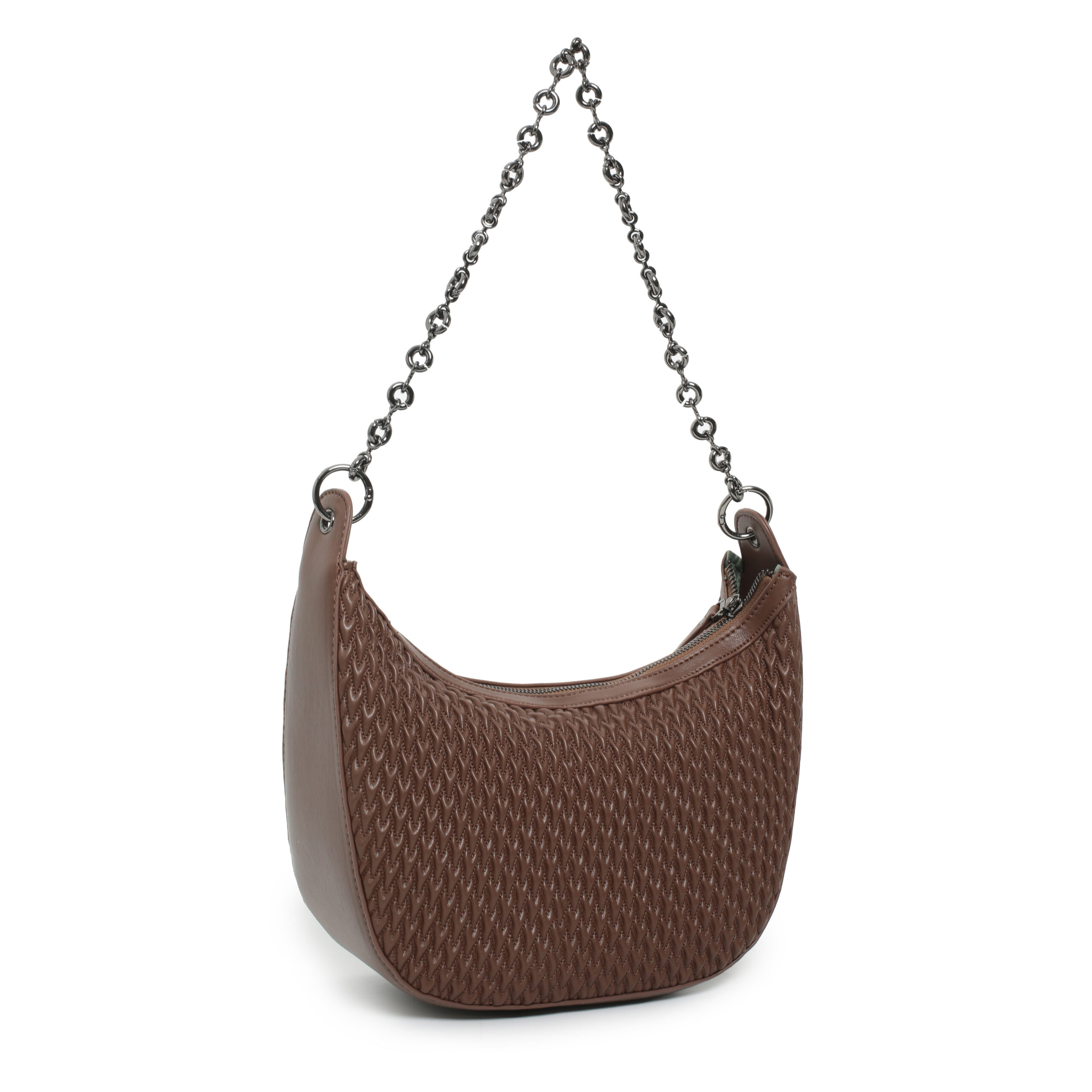 Bolso hobo corss body pu plisado color teja, asa bandolera desmontable y regulable para hombro y cruzar, asa de cadena para hombro desmontable, cierre con cremallera, 2 bolsillos interiores.