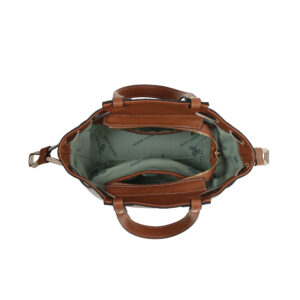Bolso judas pu napa color cuero, asas de mano, asa bandolera desmontable y regulable para hombro y cruzar, cierre con iman, 2 bolsillos interiores.