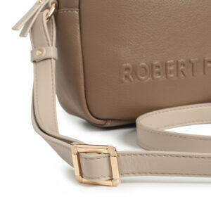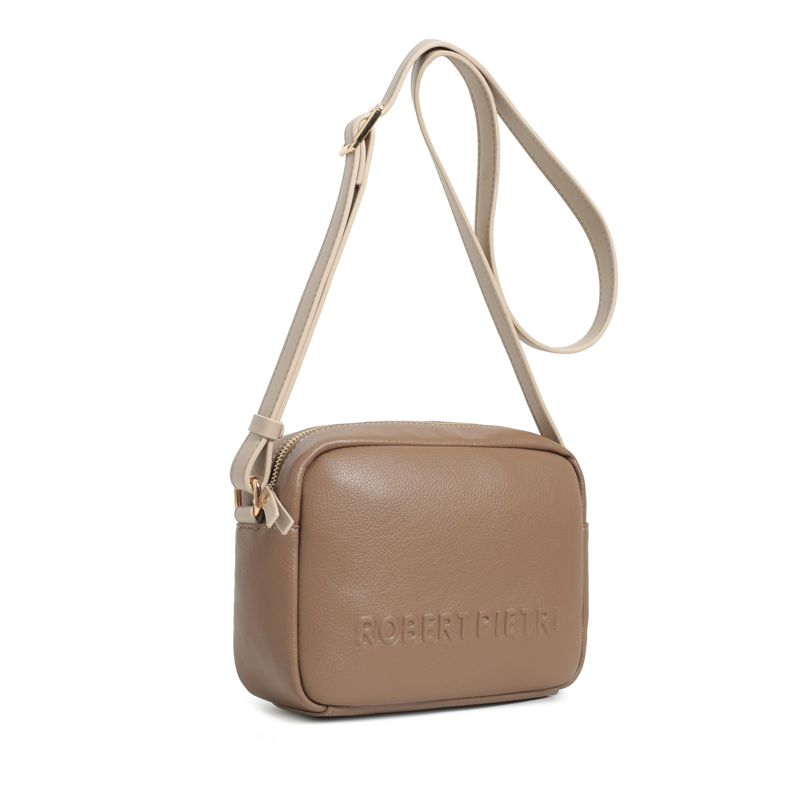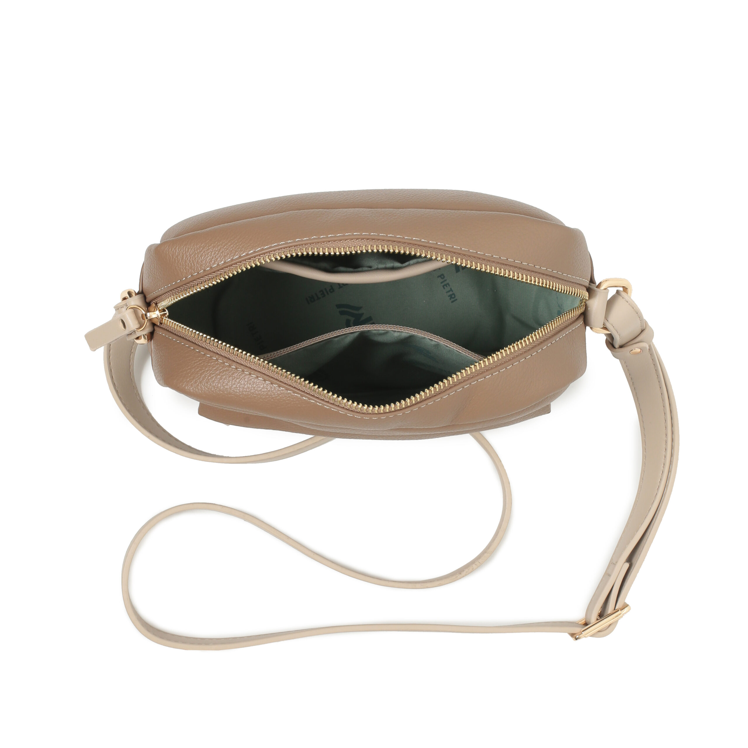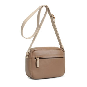 Bolso cross body color moka, asa bandolera para hombro y cruzar , cierre con cremallera, 2 bolsillos interiores y 1 bolsillo exterior.