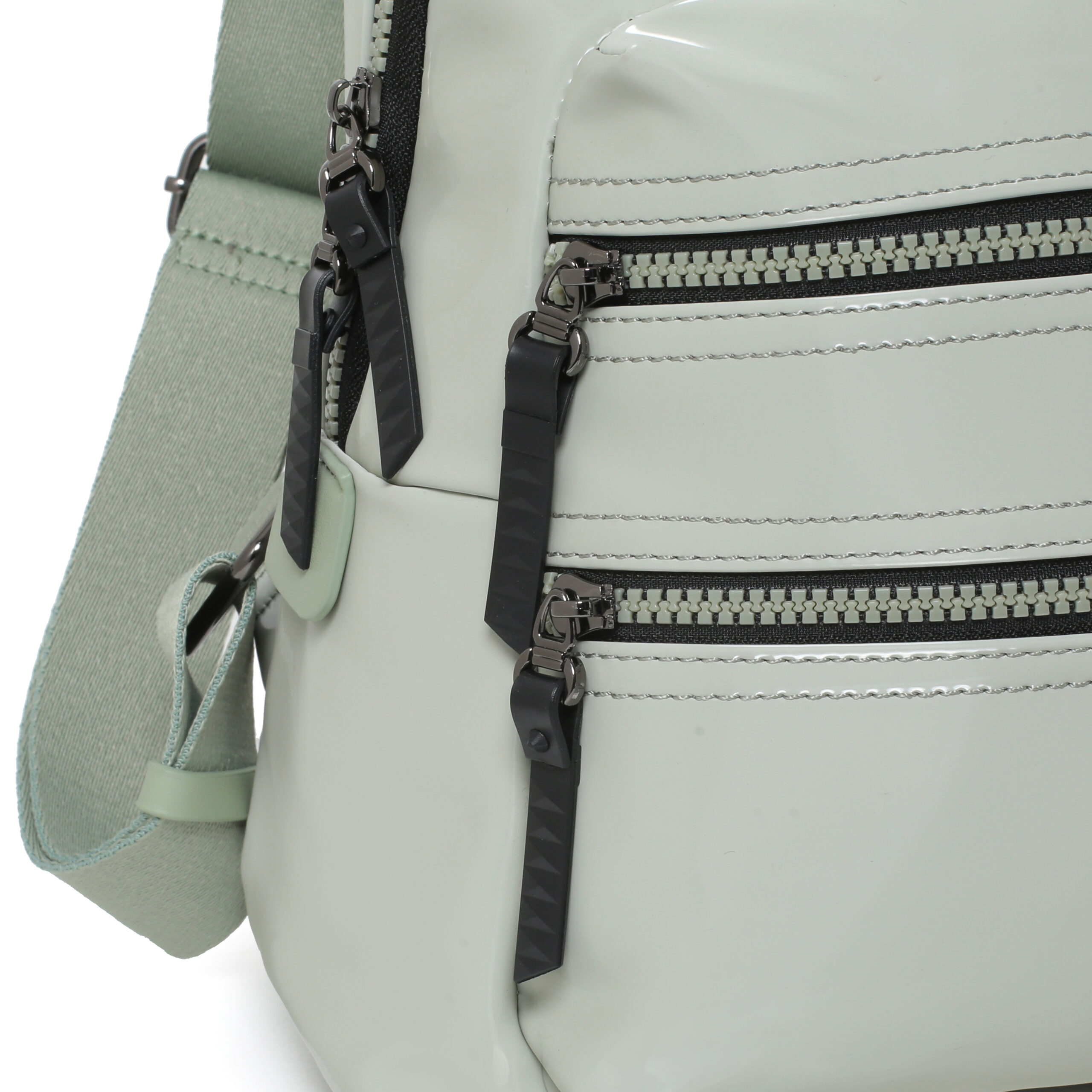 Mochila back pack tejido tecnico color aqua, asa de mano y asas de hombro regulables , cierre con cremallera, 2 bolsillos interiores y 3 bolsillos exteriores.