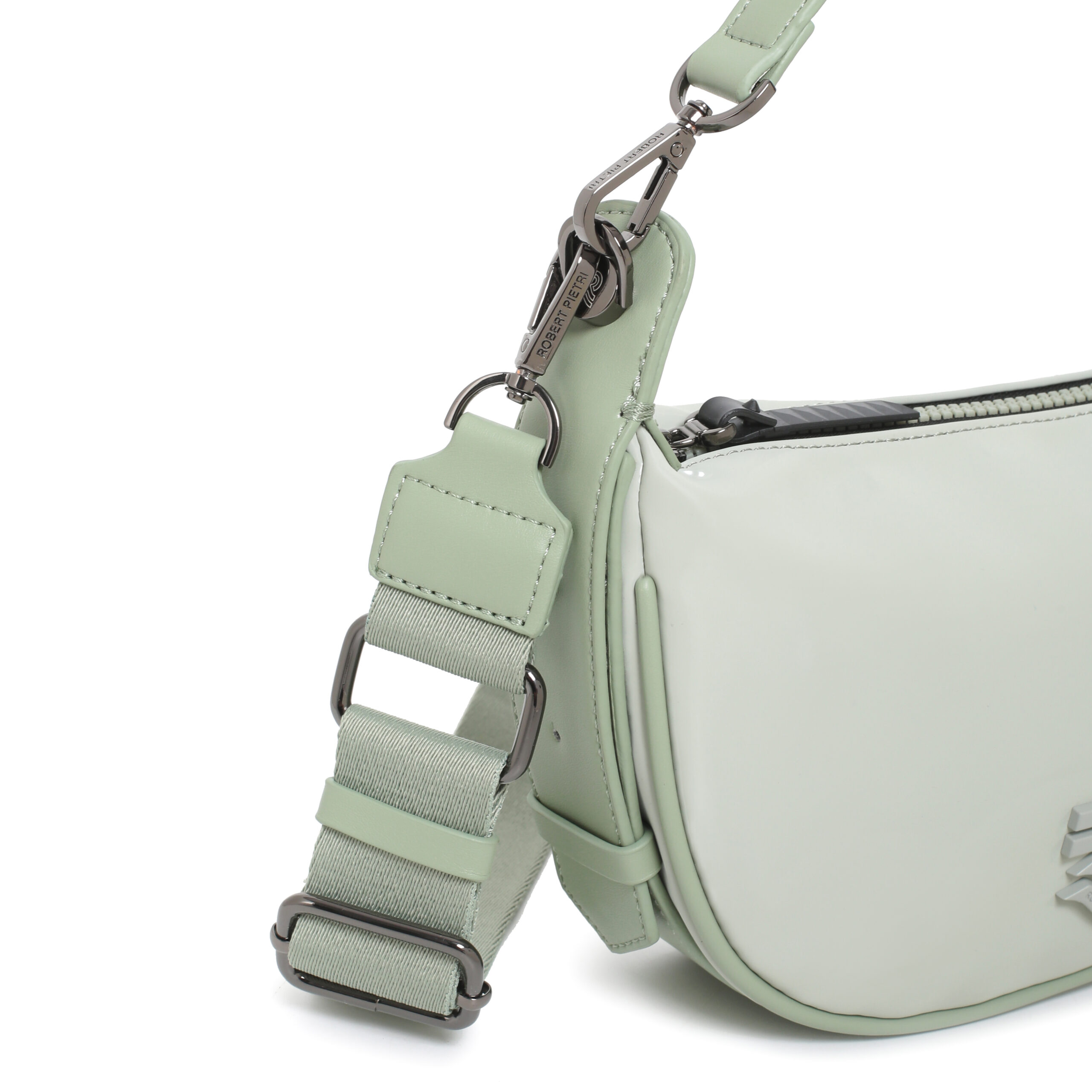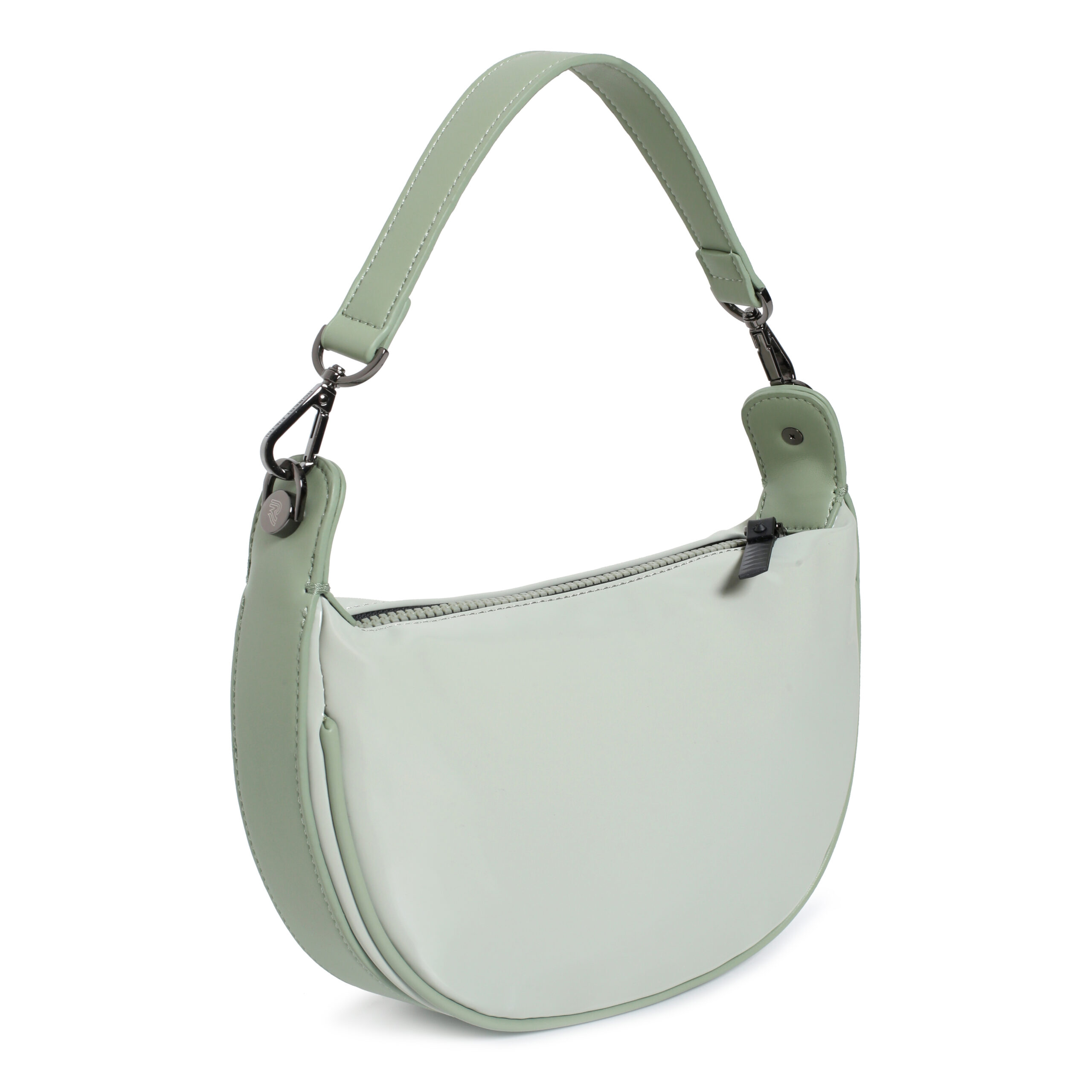 Bolso hobo mini tejido tecnico color aqua, asa de hombro desmontable y asa bandolera regulable y desmontable , cierre con cremallera, 2 bolsillos interiores.