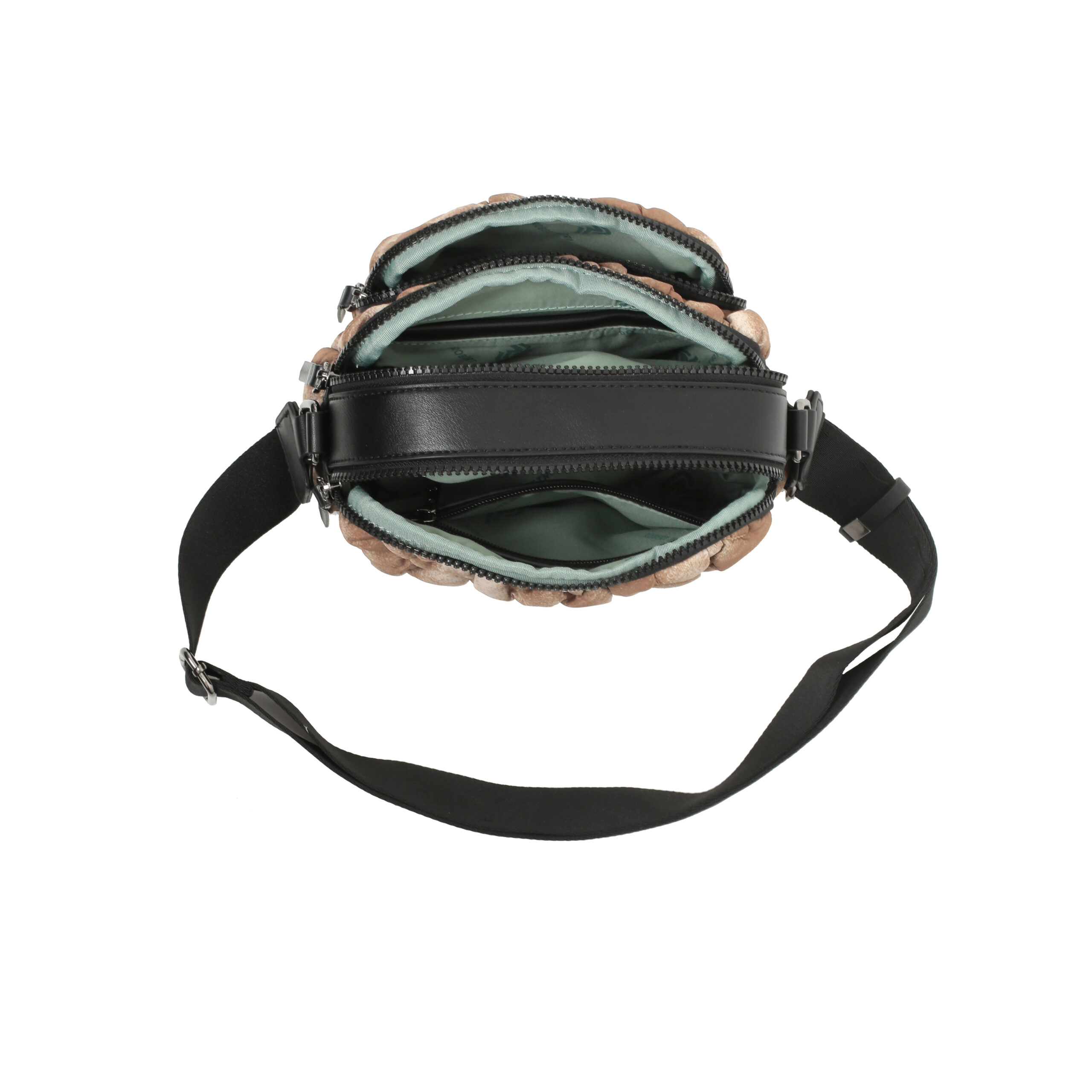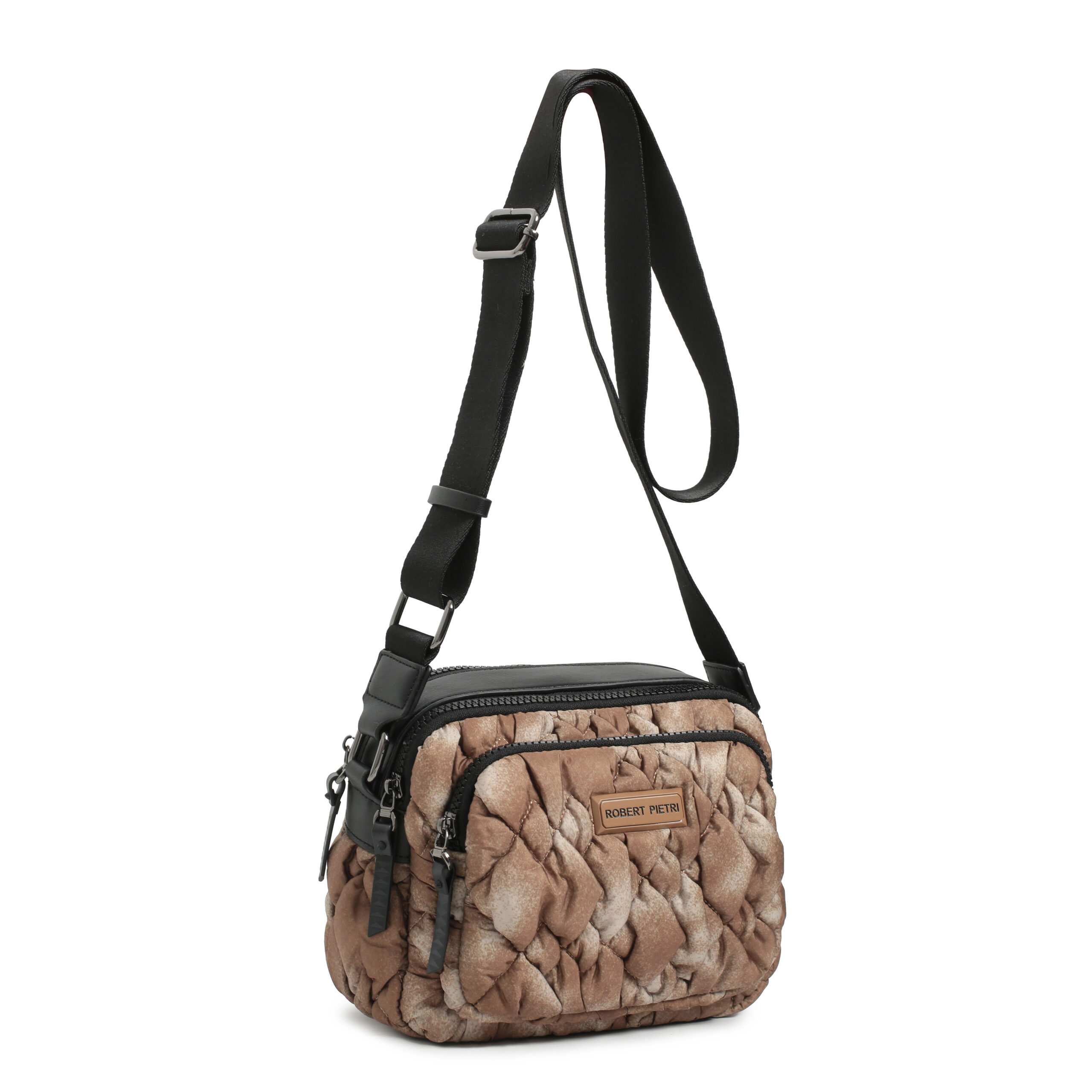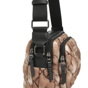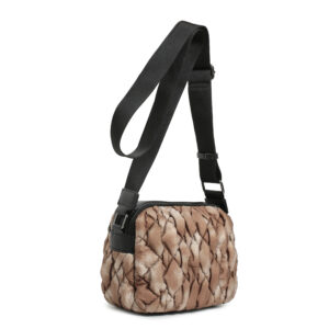 Bolso cross body nylon acolchado color natural, asa bandolera para hombro y cruzar , cierre con cremallera, 2 bolsillos interiores y 1 bolsillo exterior.