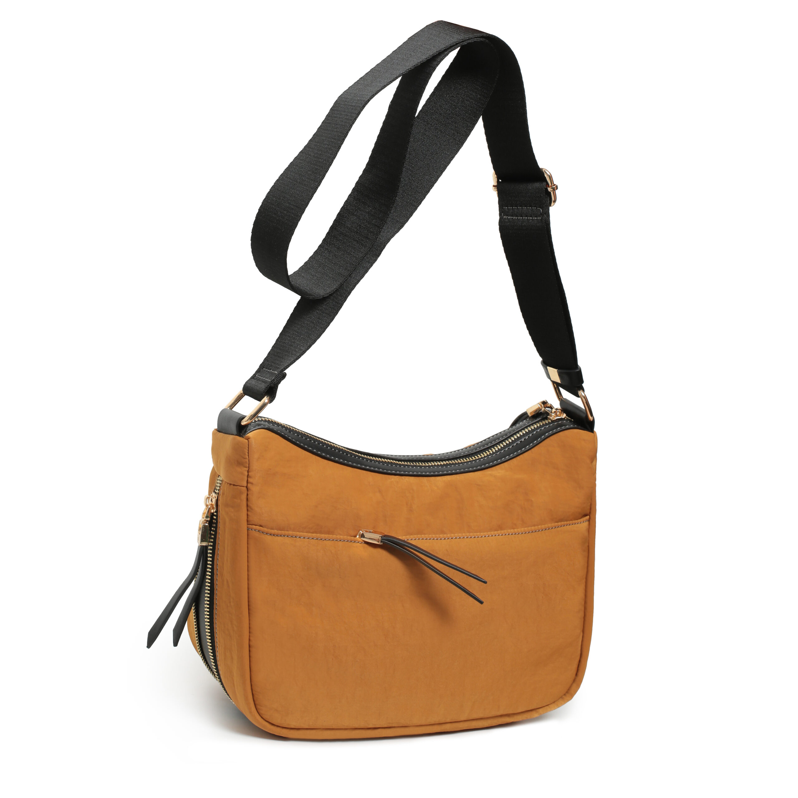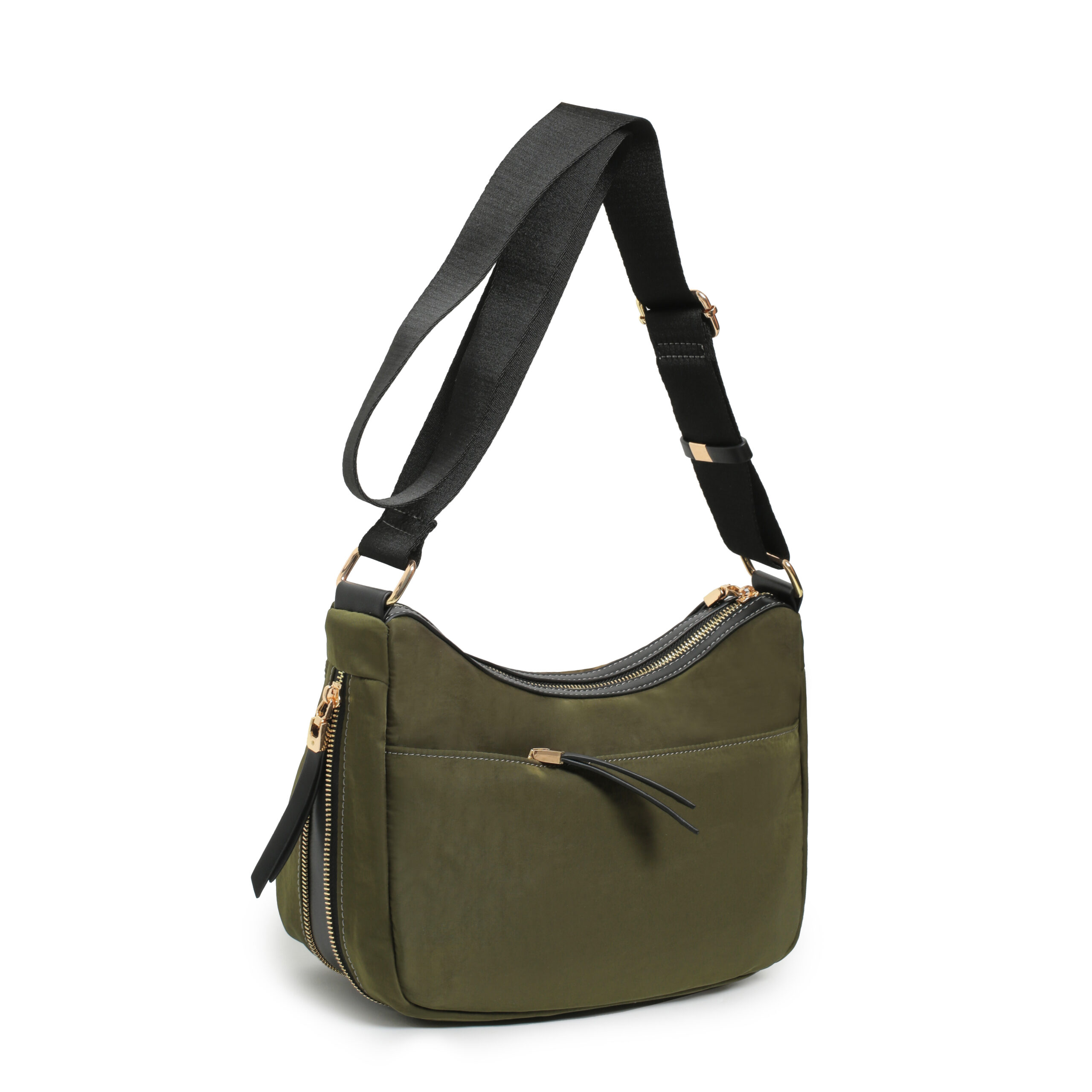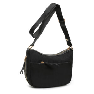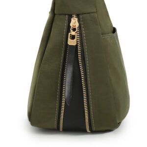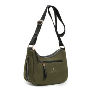 Bolso hobo corss body nylon color verde, asa bandolera regulable para hombro y cruzar, cierre con cremallera, 2 bolsillos interiores y 2 bolsillos exteriores.