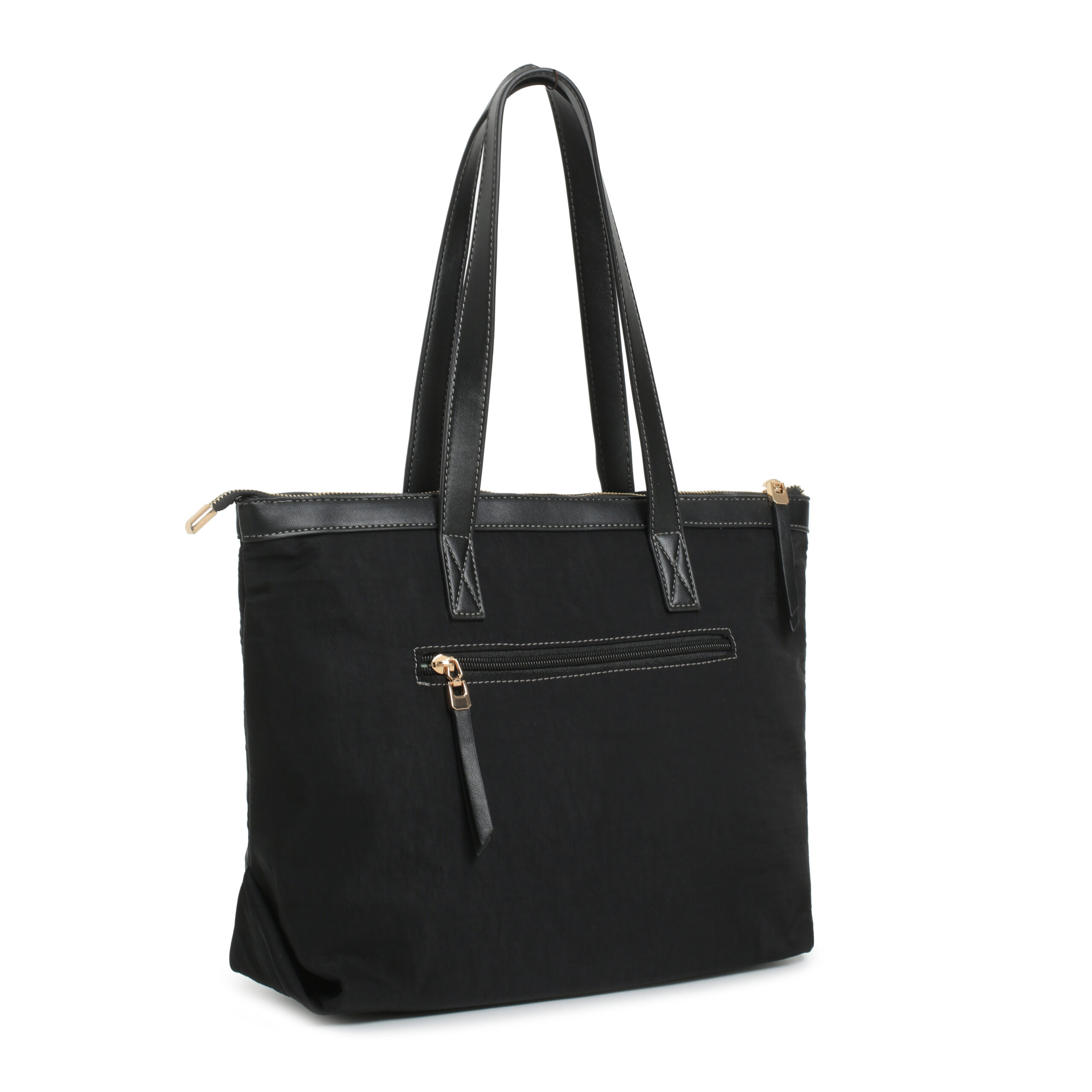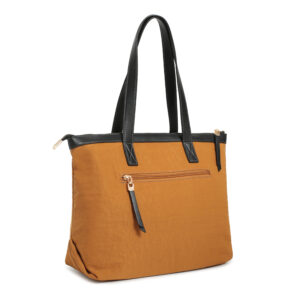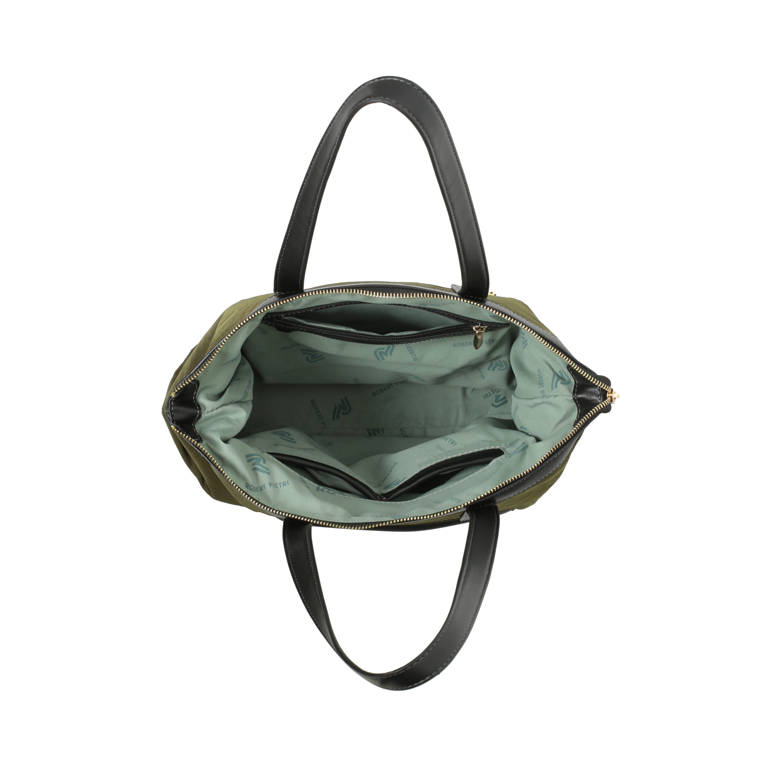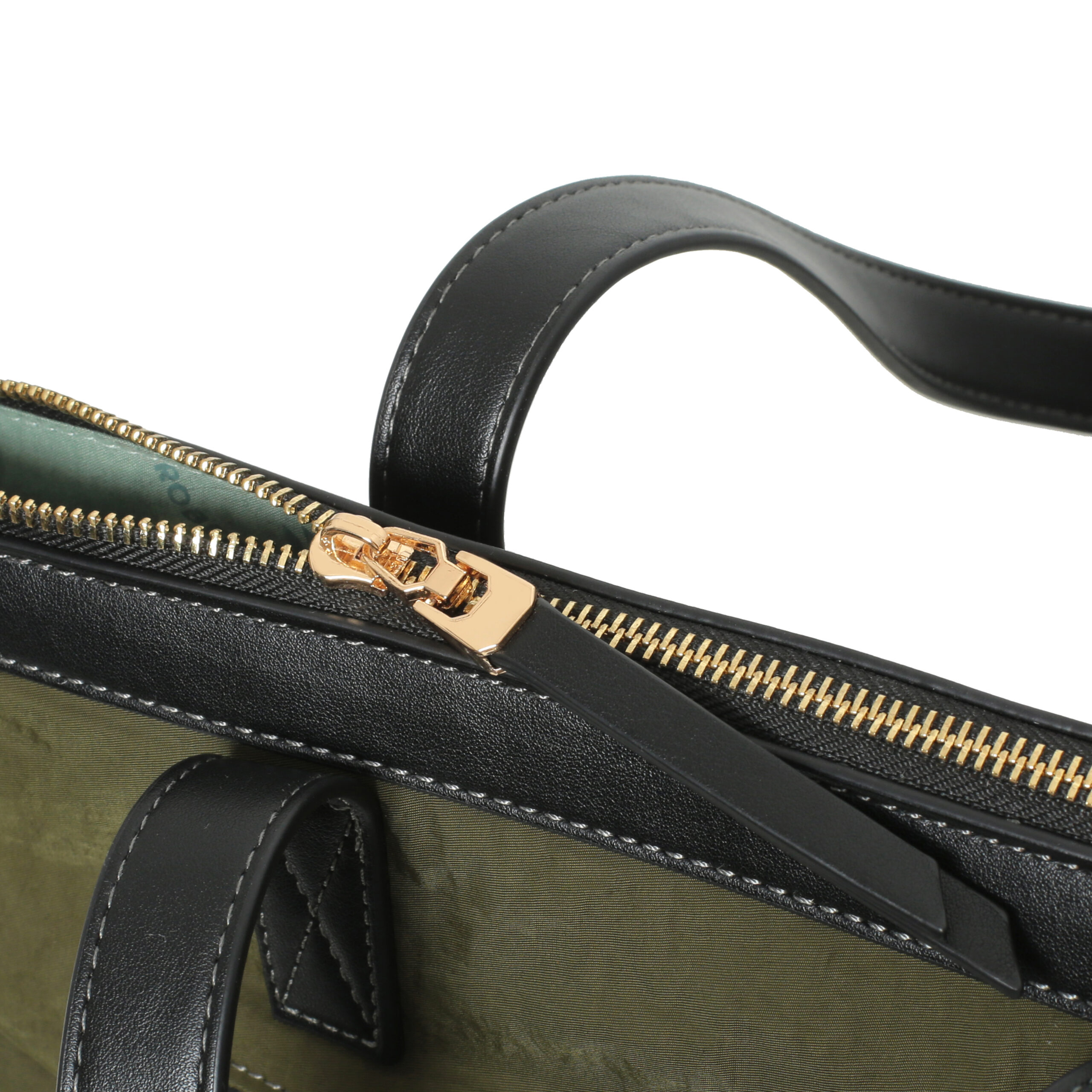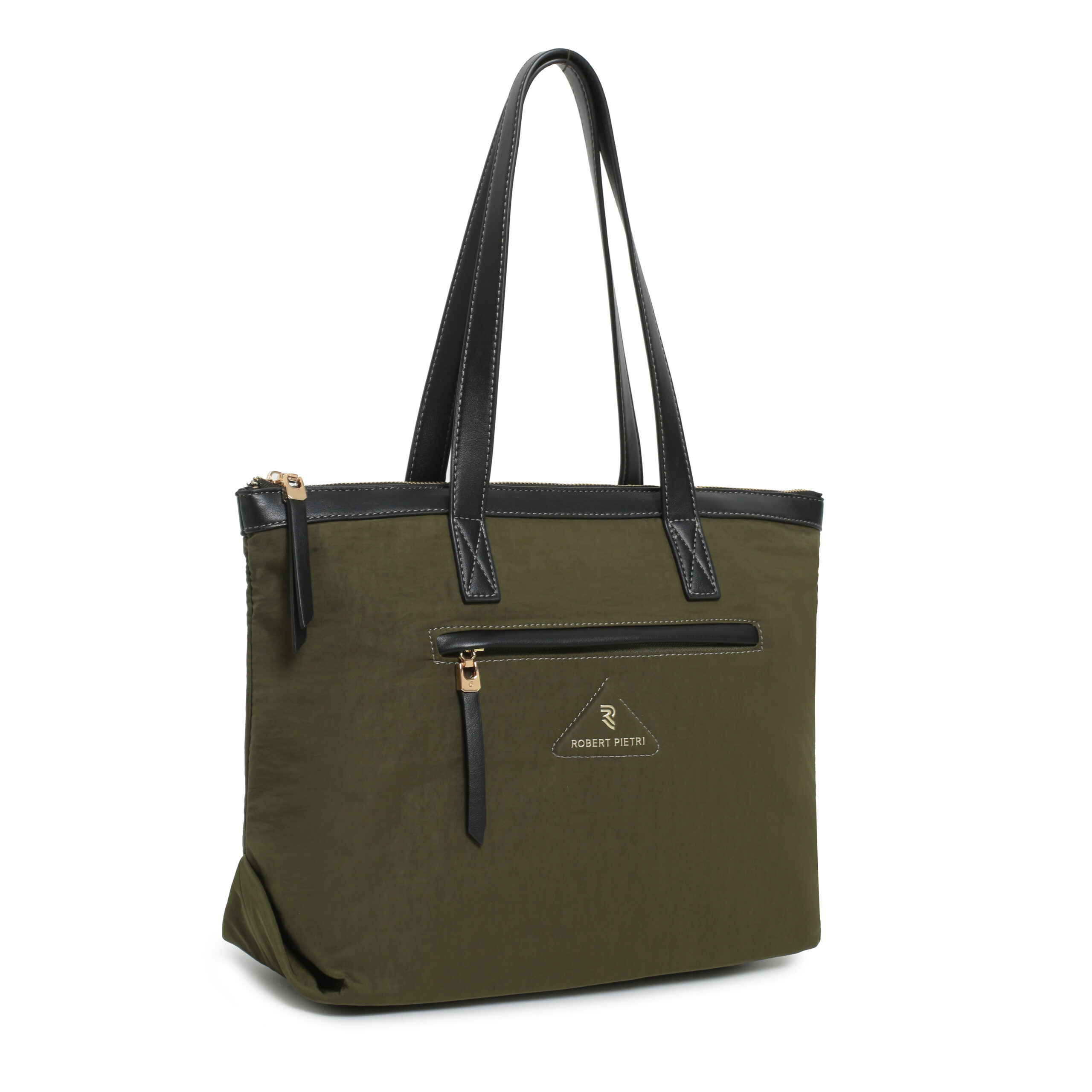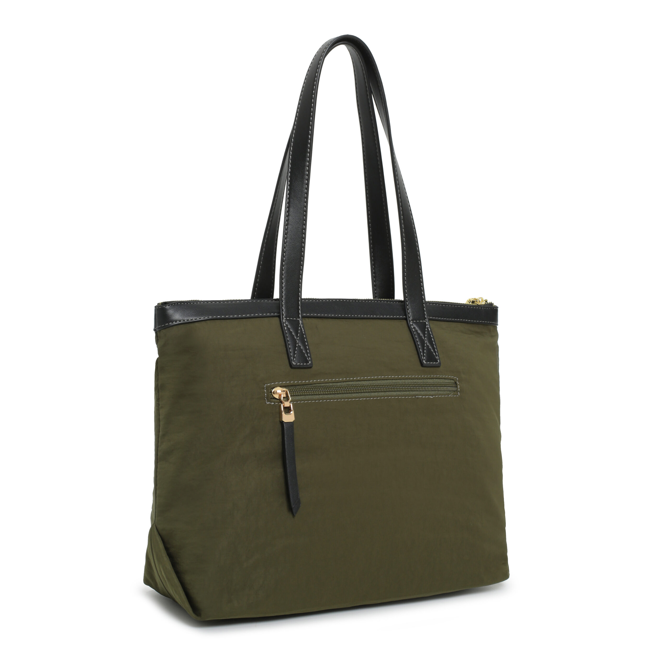 Bolso shopper nylon color verde, 2 asas para hombro, cierre con cremallera, 2 bolsillos interiores y 2 bolsillos exteriores.
